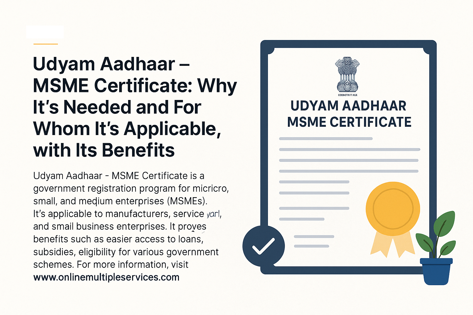 Udyam Aadhar, now commonly known as Udyam Registration, is the official recognition certificate provided by the Ministry of Micro, Small & Medium Enterprises (MSME), Government of India. It gives a unique identity to small businesses and startups, allowing them to avail various government schemes, subsidies, and business support services.
